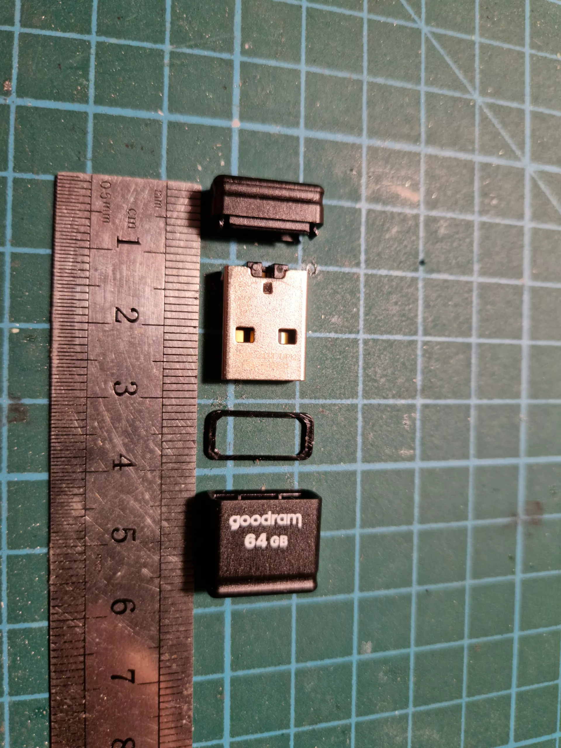 The core of the pendant will be a USB drive. I chose a GoodRam UPI2 because of its rigid design. After removing the plastic parts you got a clean full metal USB stick with little grip bumps on the sides.