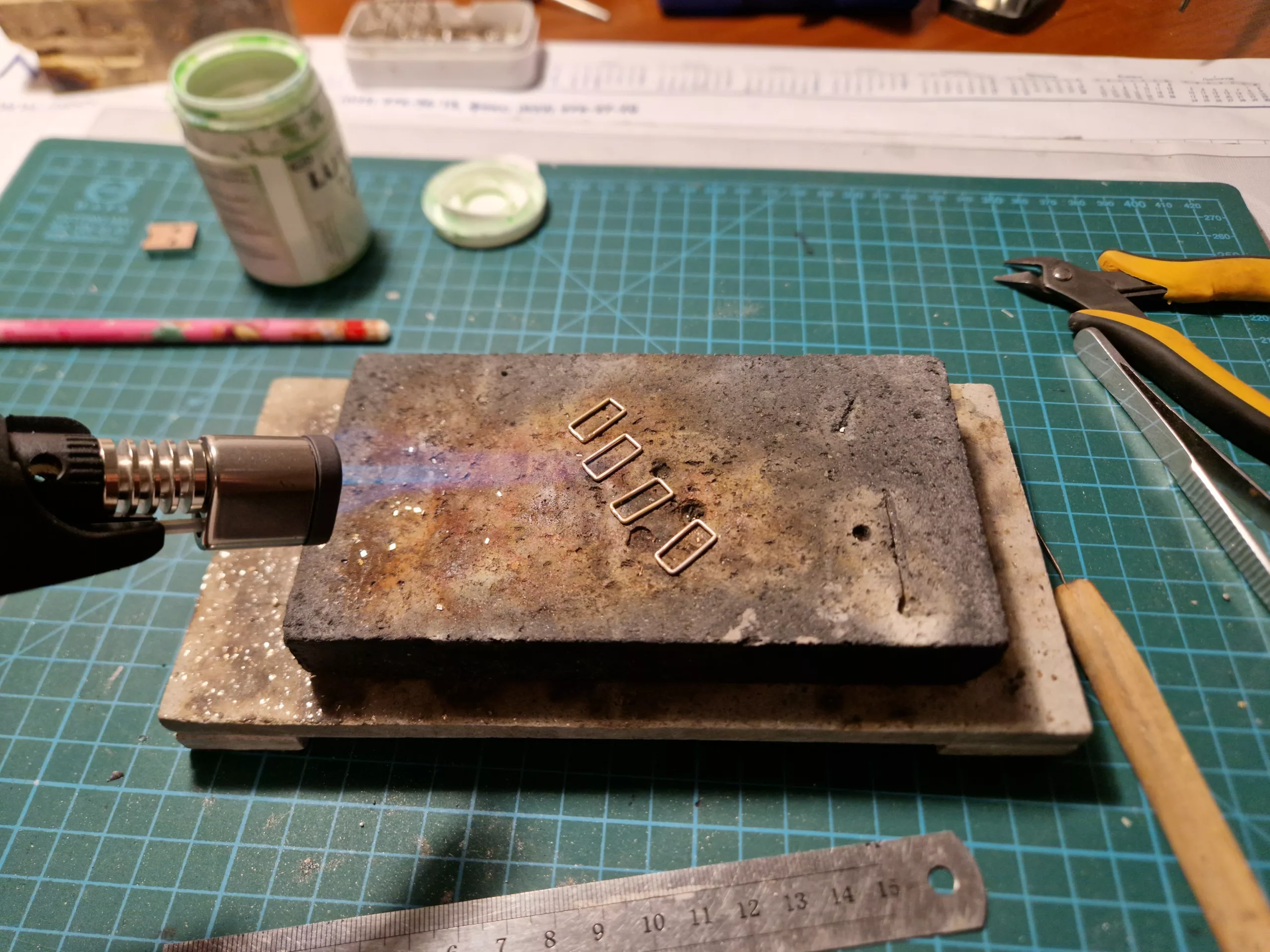 Once the rings are bent into the rectangular rings it is time for the first soldering. I place the rings on the soldering blocks and apply flux on the joints as well as on the corner points. At this step I use medium solder to close the rings and reinforce the corners.