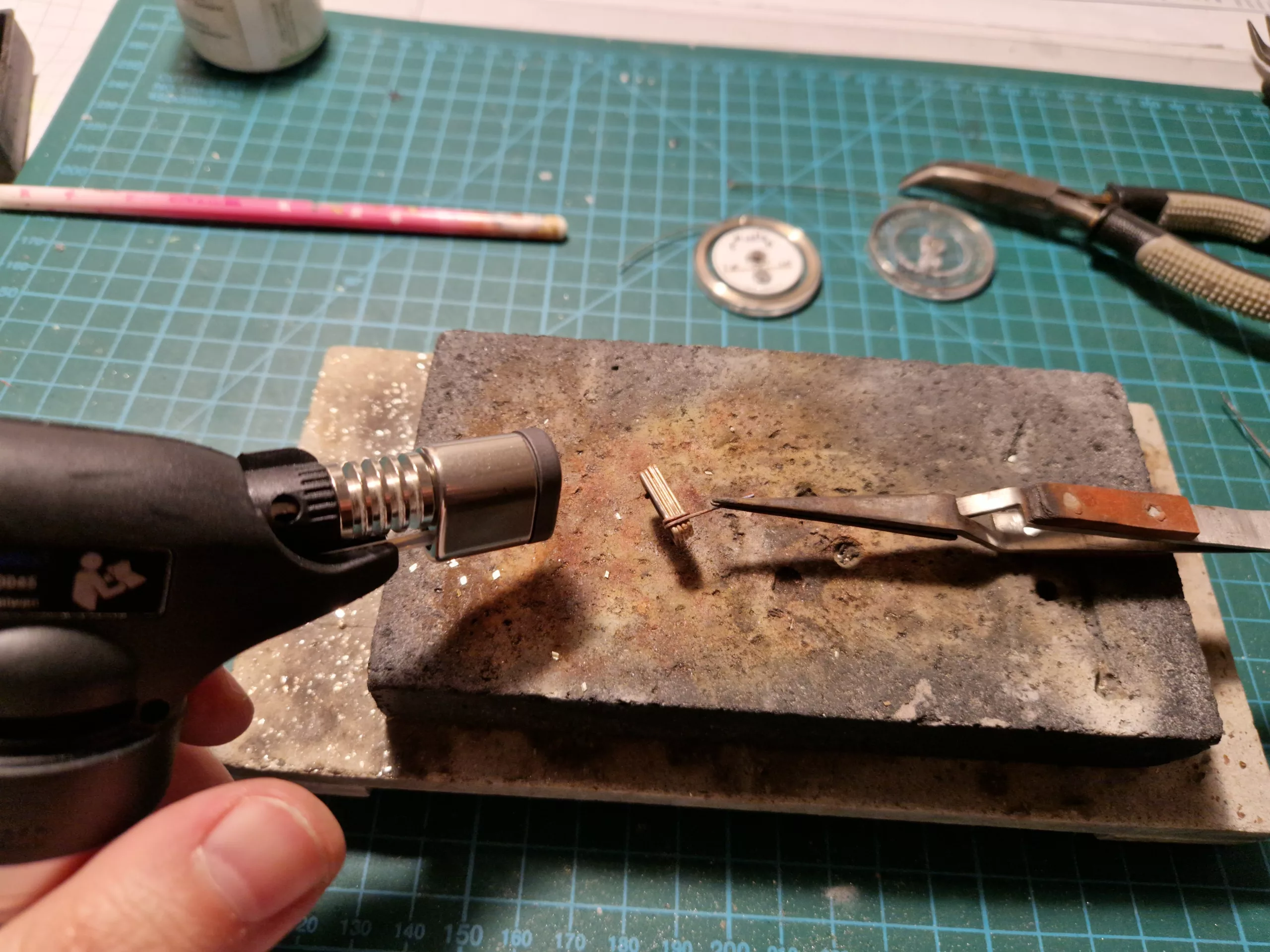I used engraver to grind the spots a bit to ensure good joints. Then a took 2 pieces of 1mm wire and bent them in a horseshoe manner. This way it is easier to solder the prongs.