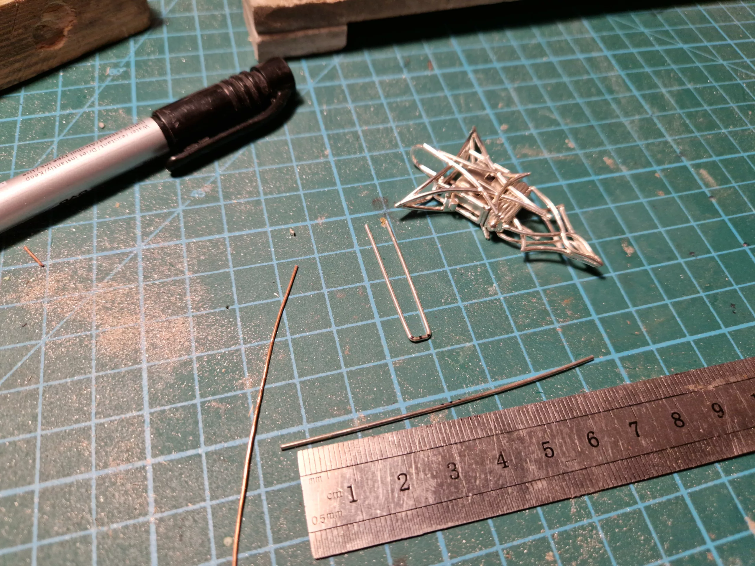 I start with a larger triangle. I cut a piece of 1.2mm wire for a single side of a large triangle as per the sketch. Then I use this piece as a template to cut another 5 pieces of the same length to get 6 in total, 3 for each large triangle.