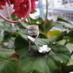 Based on a previous successful sandal I decided to start with the steps as in Strappy high heeled pendant with garnet cabochon. I jigsawed a sole out of a 1 mm thick silver plate and chamfered out the lower edge. The heel was made in a brutally inefficient but straightforward method – I hanged a piece of 2 mm wire and melted its lower part into a ball. It does require a lot of filing though to get a good heel shape.